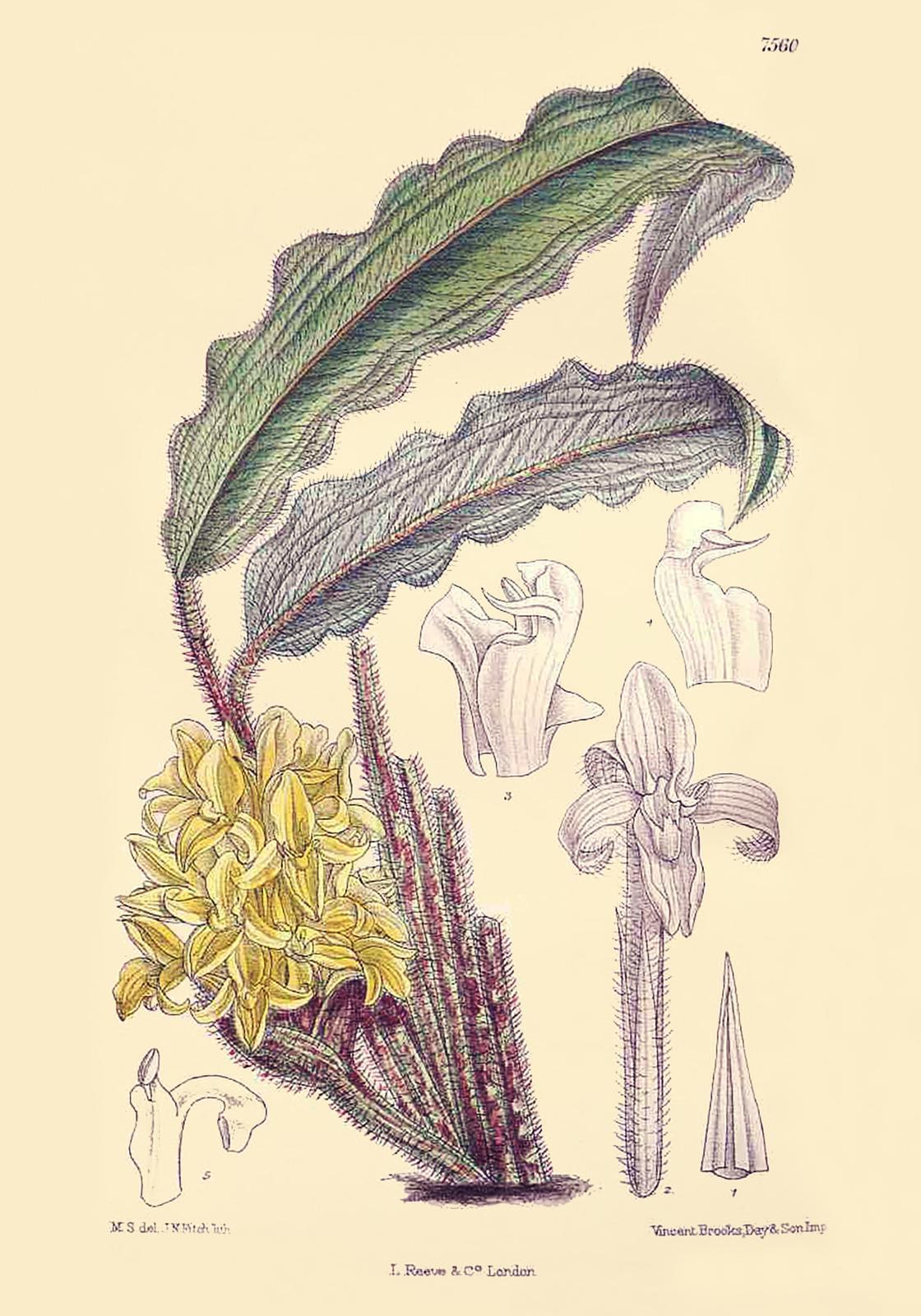 La C. rufibarba tiene hojas de un verde oscuro con el envés aterciopelado (de ahí su epíteto específico) y generalmente de color púrpura. Sus flores son grandes, nacen en el suelo del propio rizoma, pero rara vez florece en interiores.Procedencia