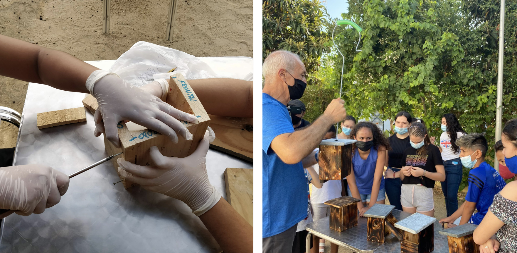 La teoría se alternaba con la práctica, tanto en el avistamiento de especies como en la construcción de cajas nido, una de las actividades prácticas que mayor interés -y pericia- despertó entre los y las participantes. A partir de materiales reciclados, y pre ensamblados, y bajo las directrices de Sergio Castañeda, una mañana se dedicó a la construcción de tres modelos diferentes de cajas nido. Una de ellas, incluso, se quedó en la Asociación, alojada en uno de los árboles del patio y bajo la atenta mirada de todos los participantes, encargados de revisar si más adelante se habitaría o no. “Y conseguimos de esta manera que se establezca un vínculo de los jóvenes con la naturaleza, despertar en ellos la conciencia y el respeto medioambientales hacen seguimiento: están cuidando de otros seres vivos y, por tanto, de su entorno”, explicaba Castañeda.