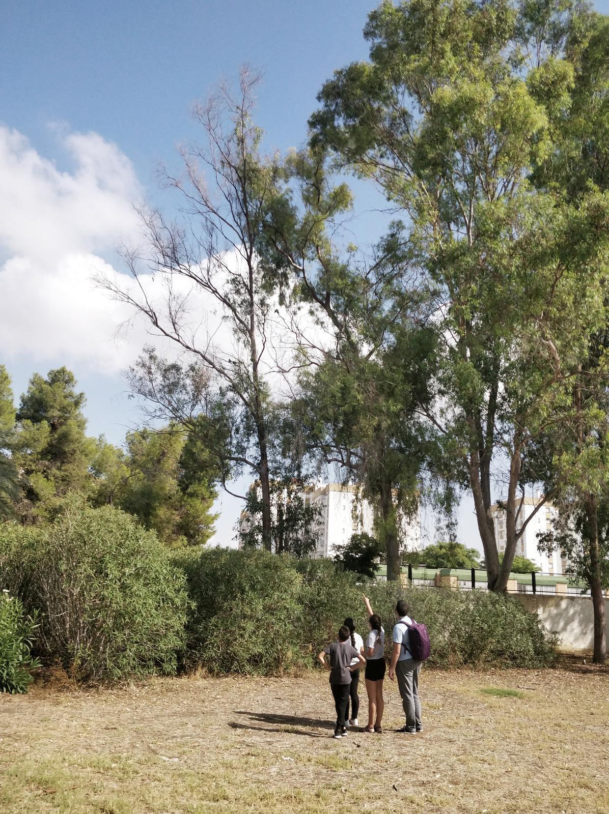 Todo este trabajo despertó la curiosidad por la avifauna que rodea el barrio y la importancia de mirar más allá y descubrir pequeños mundos imperceptibles. Un aprendizaje que han sabido interiorizar y que transforma su forma de relacionarse con el medio ambiente, uno de los objetivos que planteaba Casasola y que la AES Candelaria viene fomentando en los jóvenes del barrio con sus asiduas excursiones a parque Amate. Durante el taller, como si se tratara de exploradores y para poner en práctica lo aprendido en clase, realizamos una visita al parque, en la que nos acompañó Pepe Verdón, presidente de la Asociación de Amigos del Parque Amate. Además de conocer in situ algunas especies de plantas e insectos, y de escuchar y ver a algunos pájaros, tuvimos la oportunidad de conocer la labor que Verdón lleva desempeñando durante estos últimos 40 años para que vecinos y vecinas de Tres Barrios puedan hacer de este espacio su zona de recreo, encuentro y disfrute de la naturaleza.