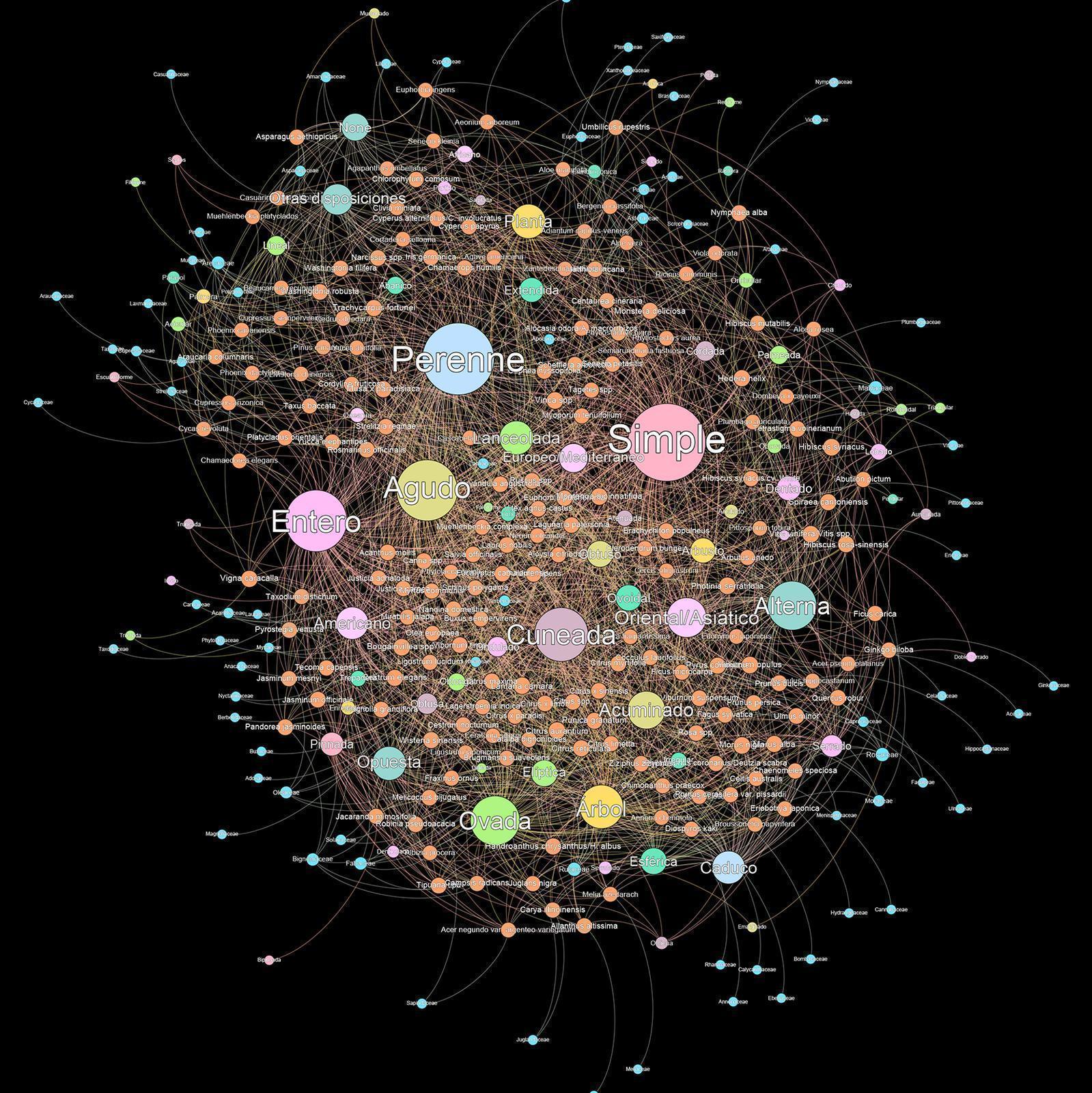 Porque un jardín no es solo la suma de los especímenes que lo componen, sino, además, las relaciones e interacciones que entre estas unidades existen y se fomentan, en esta aproximación intentamos hacer un análisis y visualización de estas interrelaciones que, a corta y larga distancia, nos informan sobre propiedades que pueden pasar desapercibidas cuando se hace una lectura demasiado cercana del mismo.