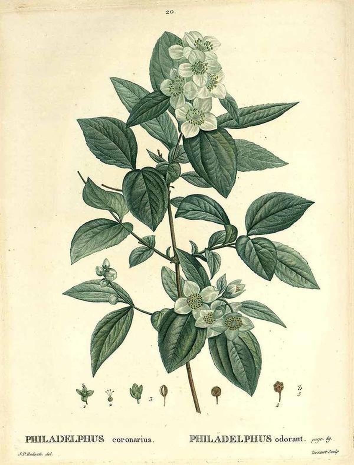 HydrangeaceaeEl nombre genérico Philadelphus, literalmente "amante de la hermana" en latín, es un homenaje al creador de la biblioteca de Alejandría, el faraón Ptolomeo II Philadelphus, así llamado por haberse casado con su hermana, práctica común en el antiguo Egipto.
