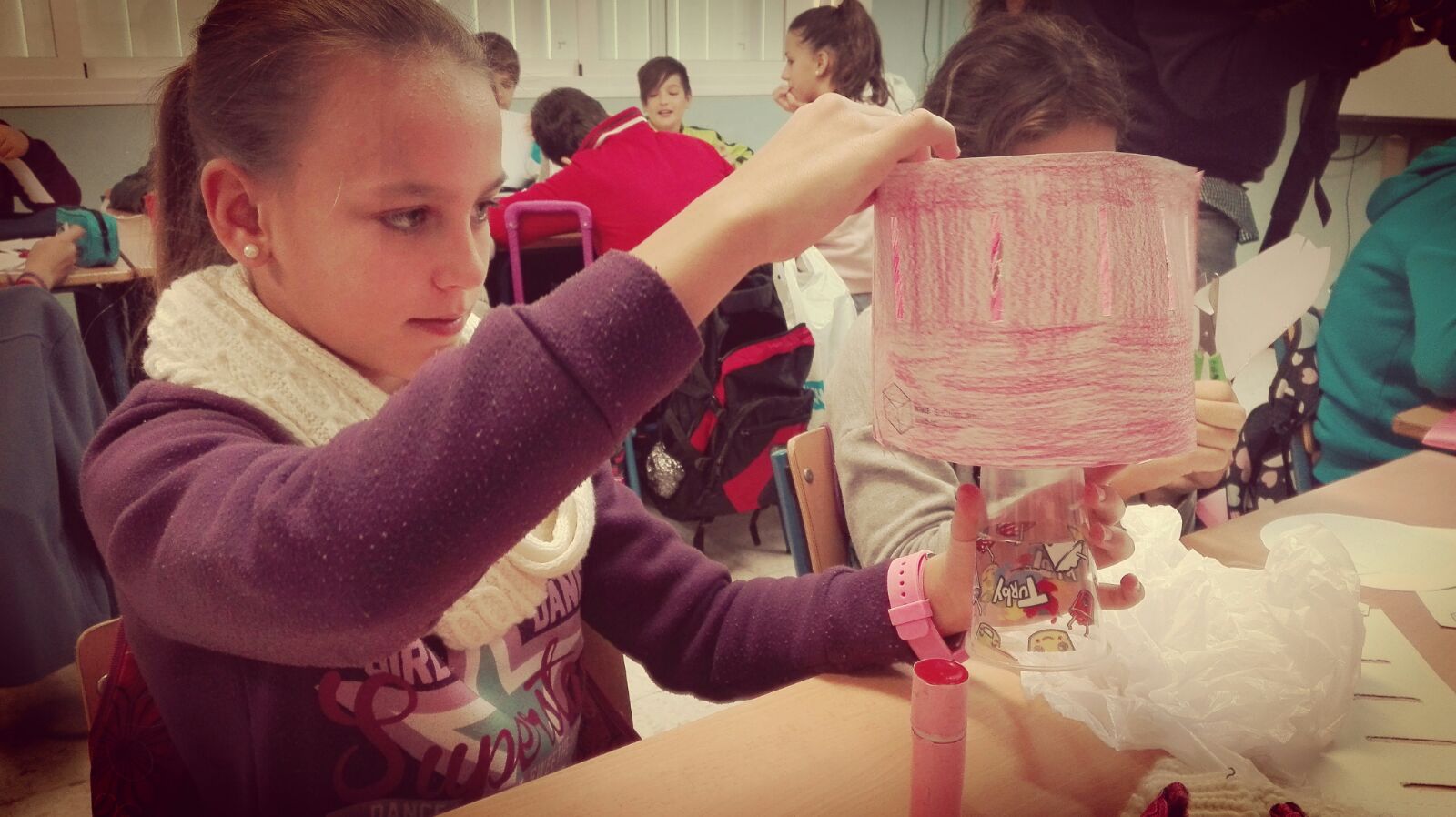 Pero esto no queda aquí. En la propuesta, esta iluminación se encuentra en unos zoótropos que cuentan historias del huerto. Aprendimos cuál es el origen y funcionamiento de estos artilugios, y vimos que no están muy lejos de otras técnicas “modernas” de animación que hoy día utilizamos (como los vídeos hechos con secuencias de fotografías, o los famosos GIFs).