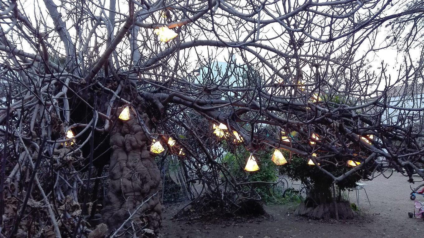 Si algo ha sido esta experiencia de las luces de Barrio ha sido un acercamiento al Otoño. Los tres meses que ha durado el desarrollo del trabajo, desde Octubre a Navidad, ha habido un acercamiento casi diario a los jardines del huerto y hemos podido observar los cambios de luz, de clima, la caída de las hojas. Algo a priori tan trivial, tan obvio y cuando se practica cada día, tan fresco, tan nuevo, tan renovador y repleto de matices.