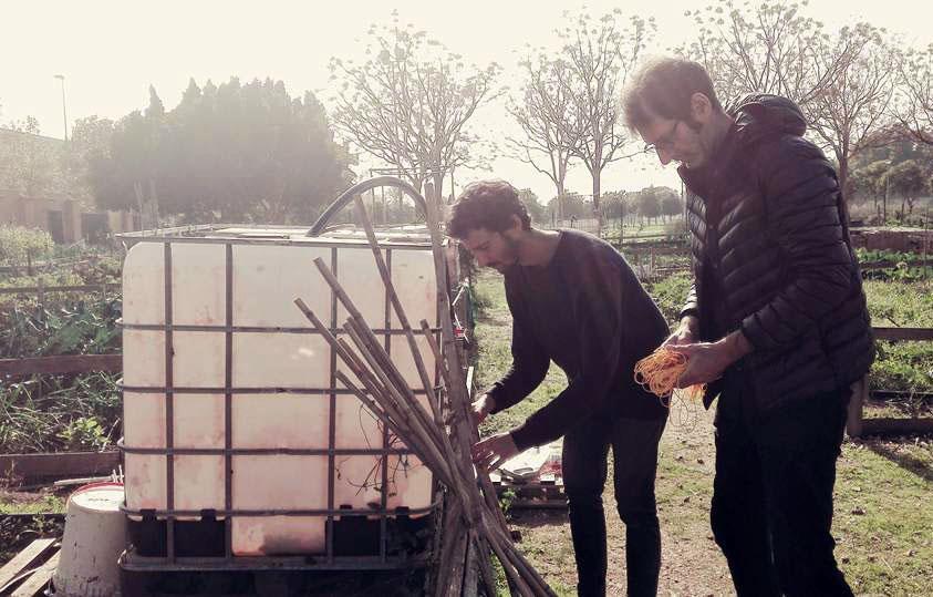 Del uno al quince, día tras día se perfecciona la secuencia de montaje de las luminarias aprendiendo de los hortelanos que nos ceden materiales, técnicas, conversación, lechugas, cebolletas, repollos…