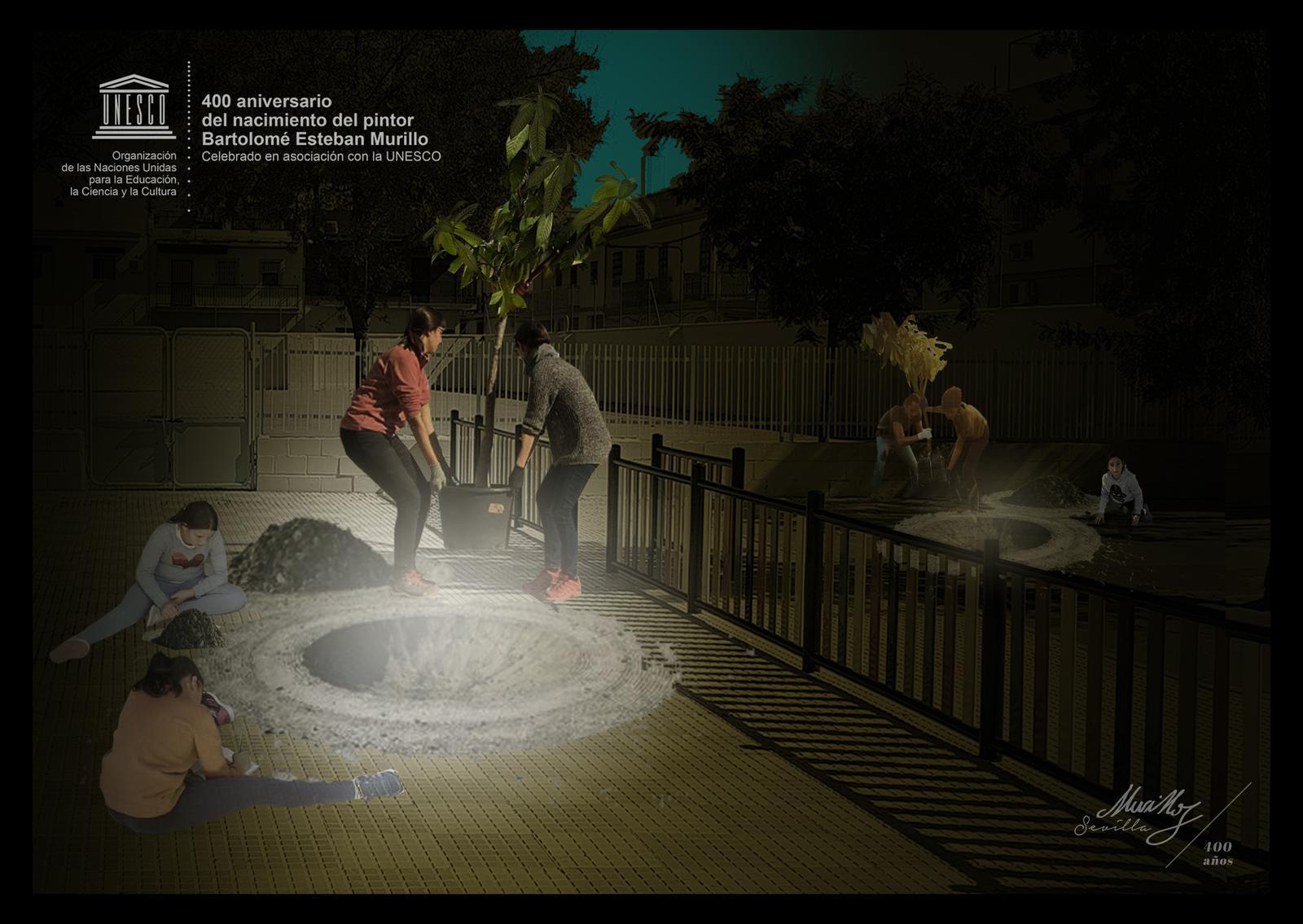 Participantes: Comunidad educativa del CEIP Veléz de Guevara.; Colaboradores: Recetas Urbanas,Azul jardines, Rosalía Fenutria, Carlos Vázquez, Manuel Beltrán; Iluminación: Benito Jiménez
