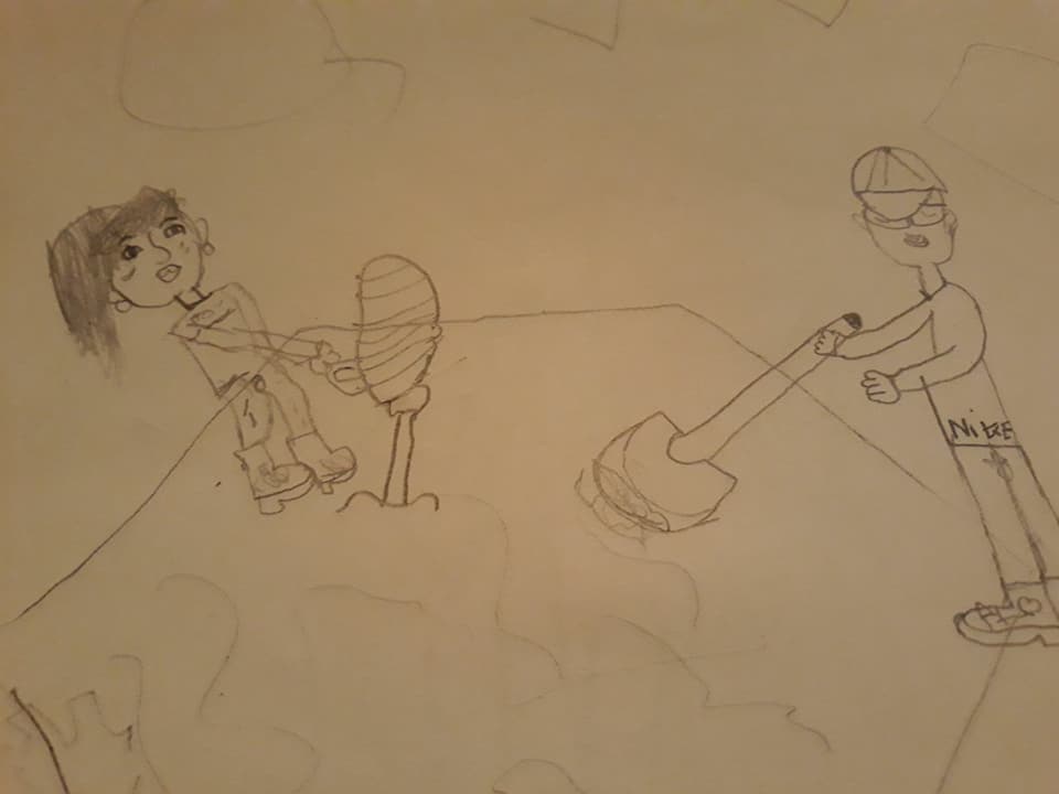 En el patio de nuestro colegio Vélez de Guevara ahora crece un precioso Ombú bellasombra y el fresno que tenía sus raíces asfixiadas por el cemento ya respira bien. El día 7 de diciembre estuvimos ilustrando el trabajo en el patio con estos dibujos donde podemos ver a las chicas de Cuartocreciente, a nuestros profesores y profesoras, a la gente de Recetas Urbanas y a algunos de nuestros padres y madres. ¡Fue un día precioso!