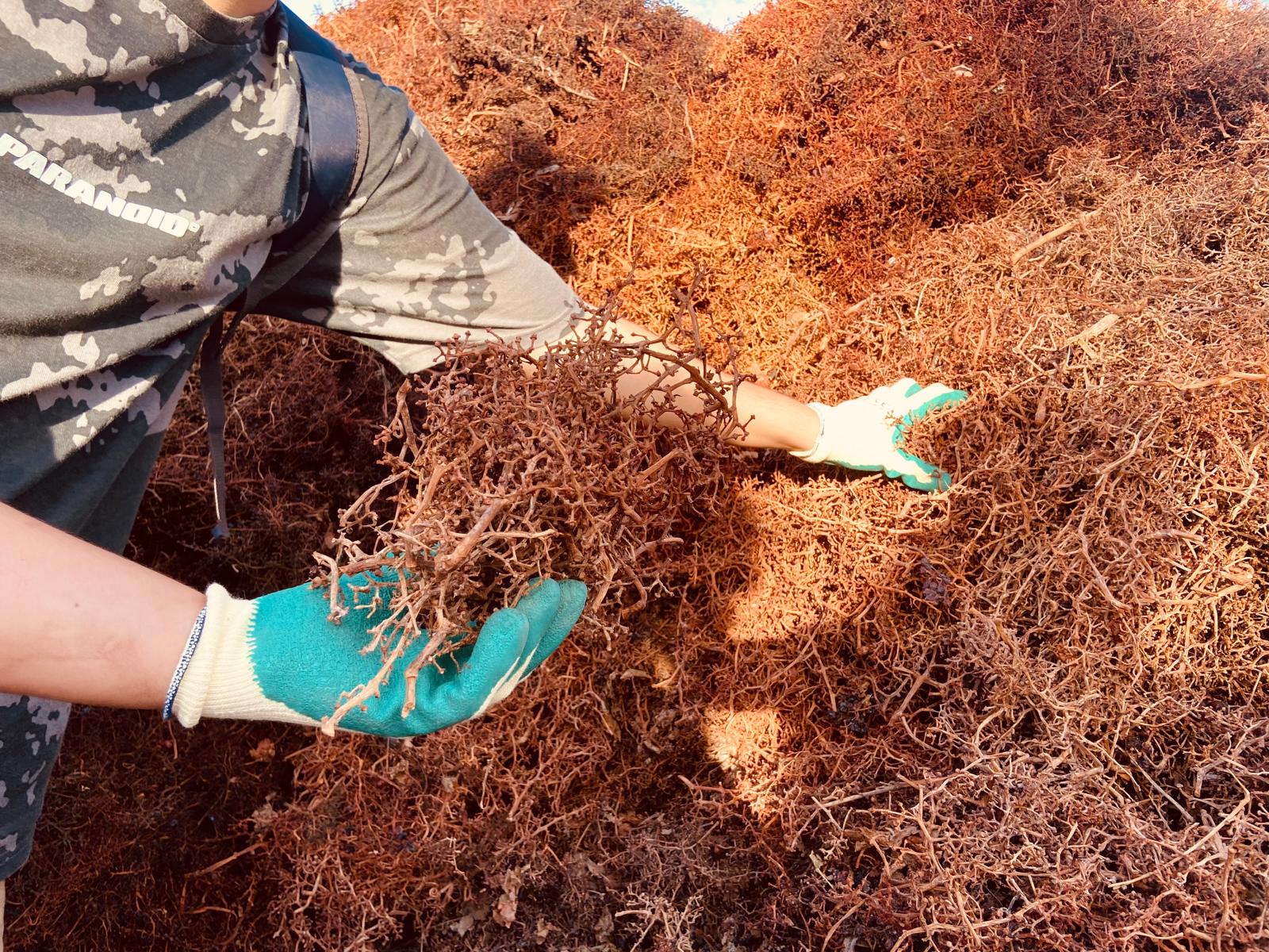 Al final de la visita y las precisas explicaciones de Willy Pérez en la Hacienda Vistahermosa de las Bodegas Luis Pérez, el alumnado de la EASD comenzó la recolección de diferentes materiales presentes en el paisaje para trabajar con ellos en los talleres de decoración cerámica.