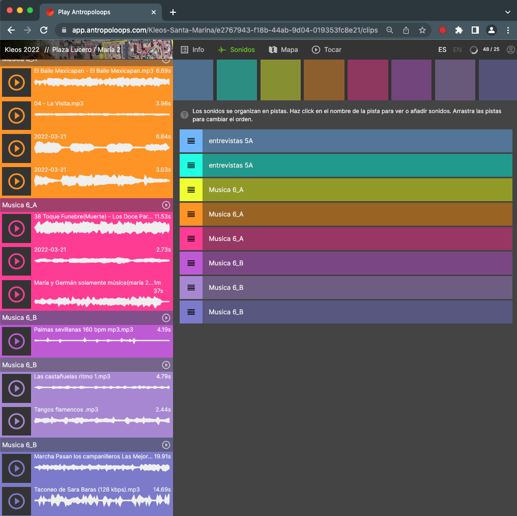 Para la Plaza del Lucero el alumnado ha creado dos piezas sonoras con play.antropoloops, trabajando sobre la entrevista a María, y algunas de las especies de la plaza: